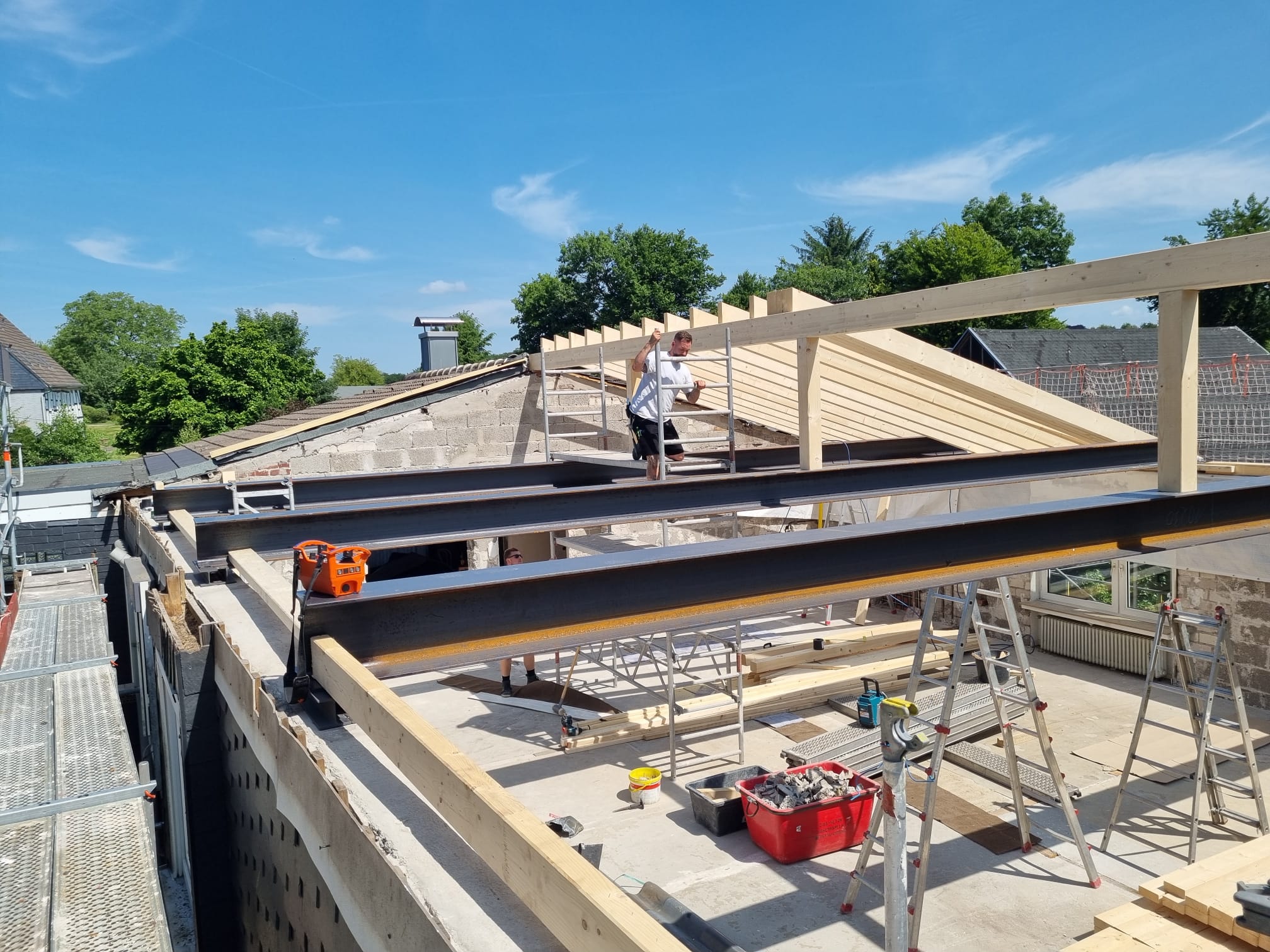 Wir verbinden traditionelles Handwerk mit umweltbewusstem Bauen. Bei der Sanierung von Bestandsgebäuden legen wir großen Wert auf langlebige, ressourcenschonende Materialien.